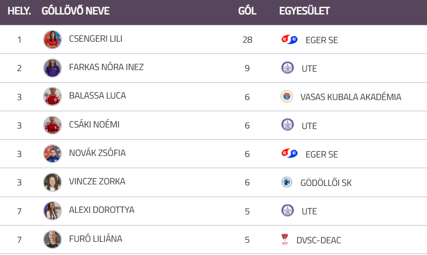 A bajnokin Csengeri Lili 9 (!!!) találatot ért el, amellyel a négy mérkőzésen szerzett – egészen elképesztő -, 28 góljával magabiztosan áll a vonatkozó lista élén.