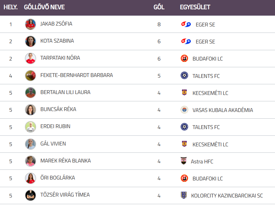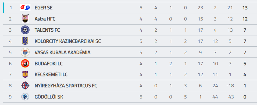 A lányok jelenleg vezetik a tabellát, míg a góllövőlistán Jakab Zsófia az első, Kota Szabina pedig a második helyen áll. A következő fordulóban szabadnapos lesz az egri csapat, így az élvonalból nyáron kiesett Astra átveheti a vezetést.