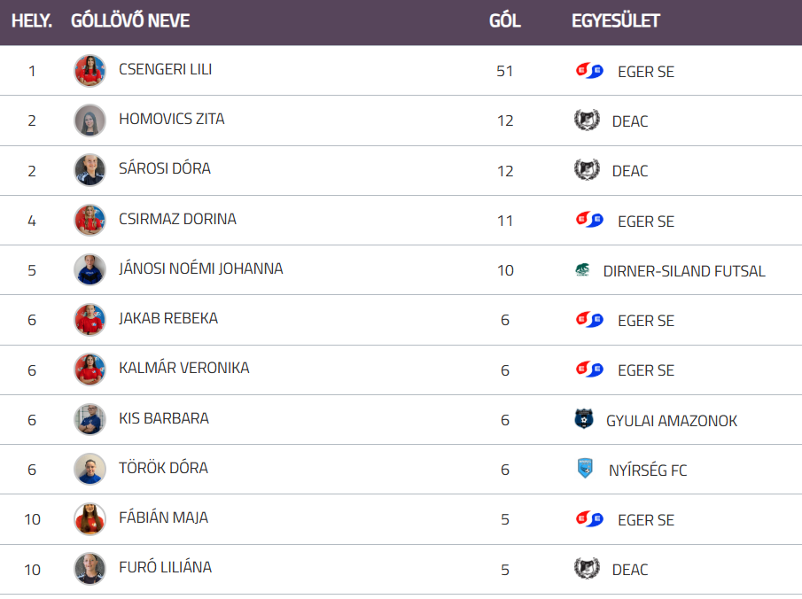 Végül 45 (!!!) rúgott góllal utaztunk haza. A góltermésből az NB1-es csapatban is bemutatkozott 15 esztendős Csengeri Lili 27 (!!!) találattal vette ki részét, így négy mérkőzésen elért 51 (!!!) góljával vezeti a vonatkozó listát.