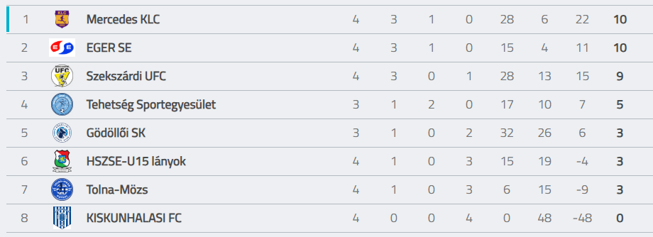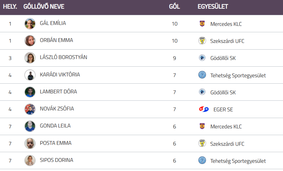 Csapatunk ezzel a második helyen áll – azonos pontszámmal a Kecskeméttel. A góllövőlistán a negyedik helyet foglalja el Novák Zsófia.