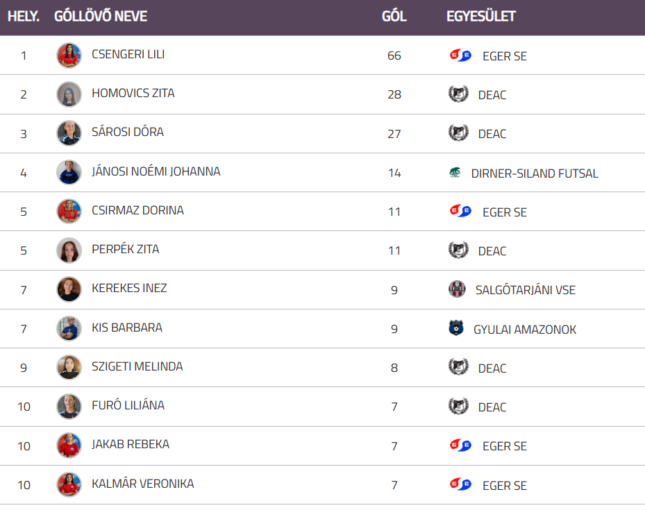 A találkozón ismét brillírozott Csengeri Lili, aki immáron 66 (!!!) találattal vezeti a góllövőlistát.