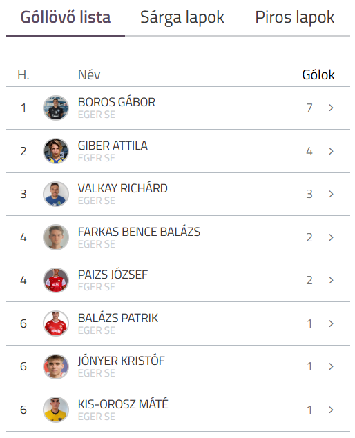 A házi góllövőlistát Boros Gábor vezeti hét találattal, második helyen Gíber Attila áll négy góllal. A gólösszefoglaló IDE kattintva tekinthető meg.