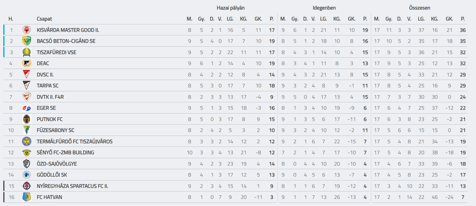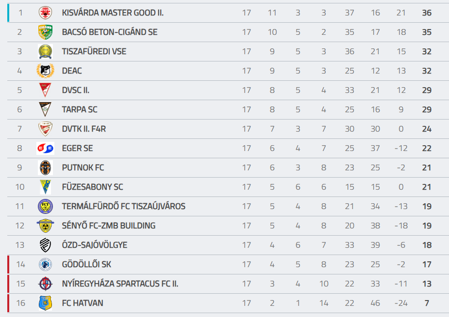 NB3-as labdarúgó csapatunk őszi teljesítményét a bajnokság tizenhetedik fordulóját követően vettük górcső alá. A tizenhat csapatos ligában két, tavaszról előrehozott mérkőzés is lejátszásra került.