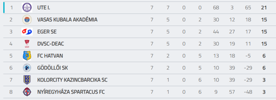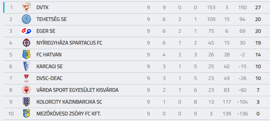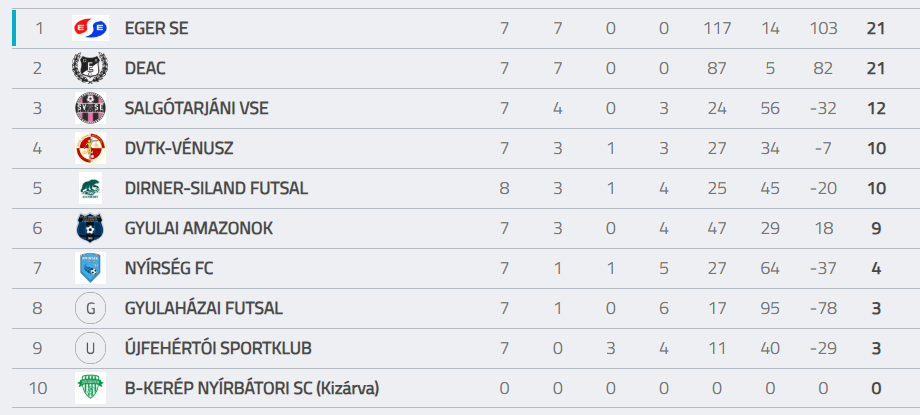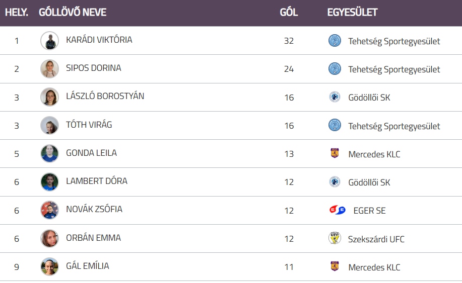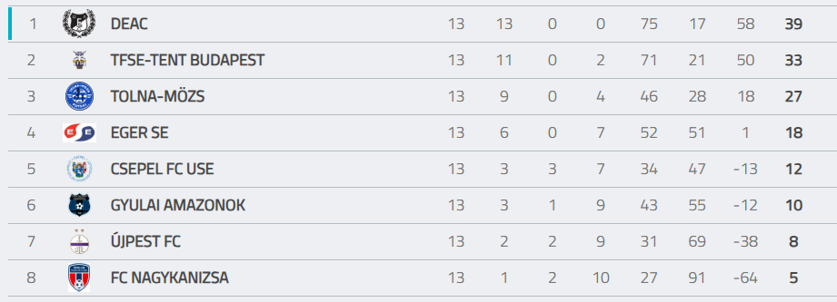 A felnőtt bajnokságban két együttesünk is részt vesz. Az NB1-es gárda a tavalyi szenzációs negyedik helyet követően ismét is ebben a pozícióban van. A nyáron klubunkból került ki a gólkirálynő és jelenleg is egyik játékosunk vezeti a listát. A csapat fejlődését jól jelzi, hogy két játékosunk is bemutatkozhatott a felnőtt magyar válogatottban. Második csapatunk az NB2es pontvadászatban játszik és hasonlóan szenzációs teljesítménnyel jelenleg a harmadik helyen áll és a góllövőlista élmezőnyében is képviselve vagyunk. Először az élvonalbeli, majd a másodosztályú táblázatokat láthatják: