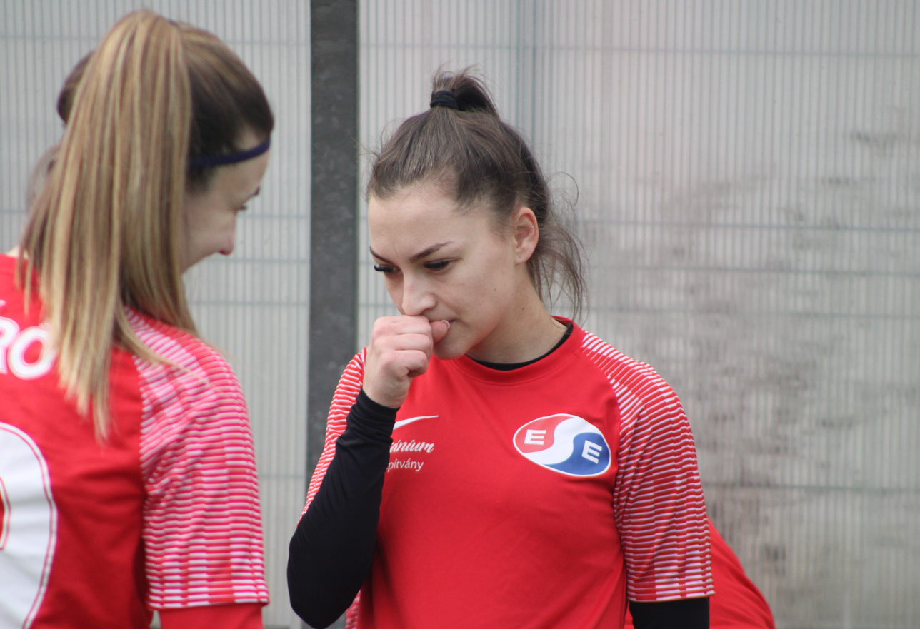 Ennek ellenére a lányok becsülettel beleálltak a találkozóba, de nem segített az esélyeket, hogy már az első negyedórában cserélni kellett, egy sérülést megelőzendő. Az első félidőben több helyzetet is kidolgoztunk, a hazaiak labdabirtoklási fölénye ellenére. A vendéglátók észlelték, hogy mezőnyjátékos állt a kapuba és két távoli átlövéssel szereztek előnyt.