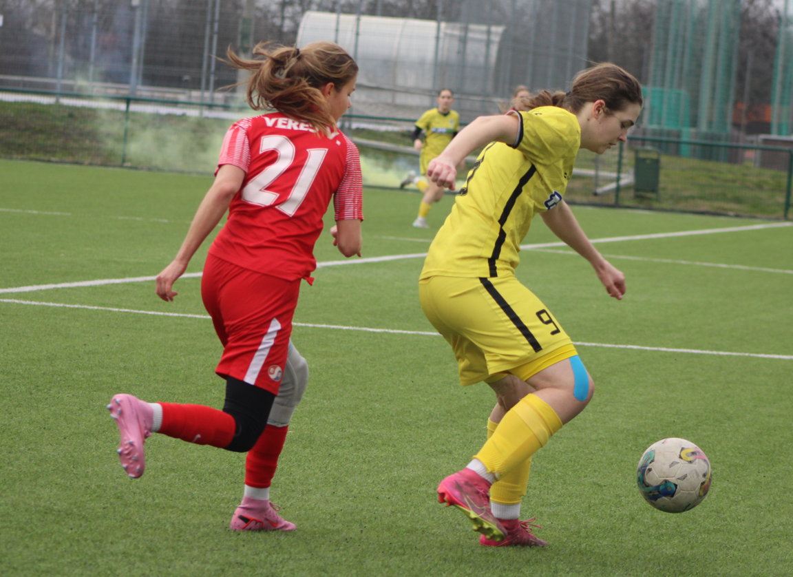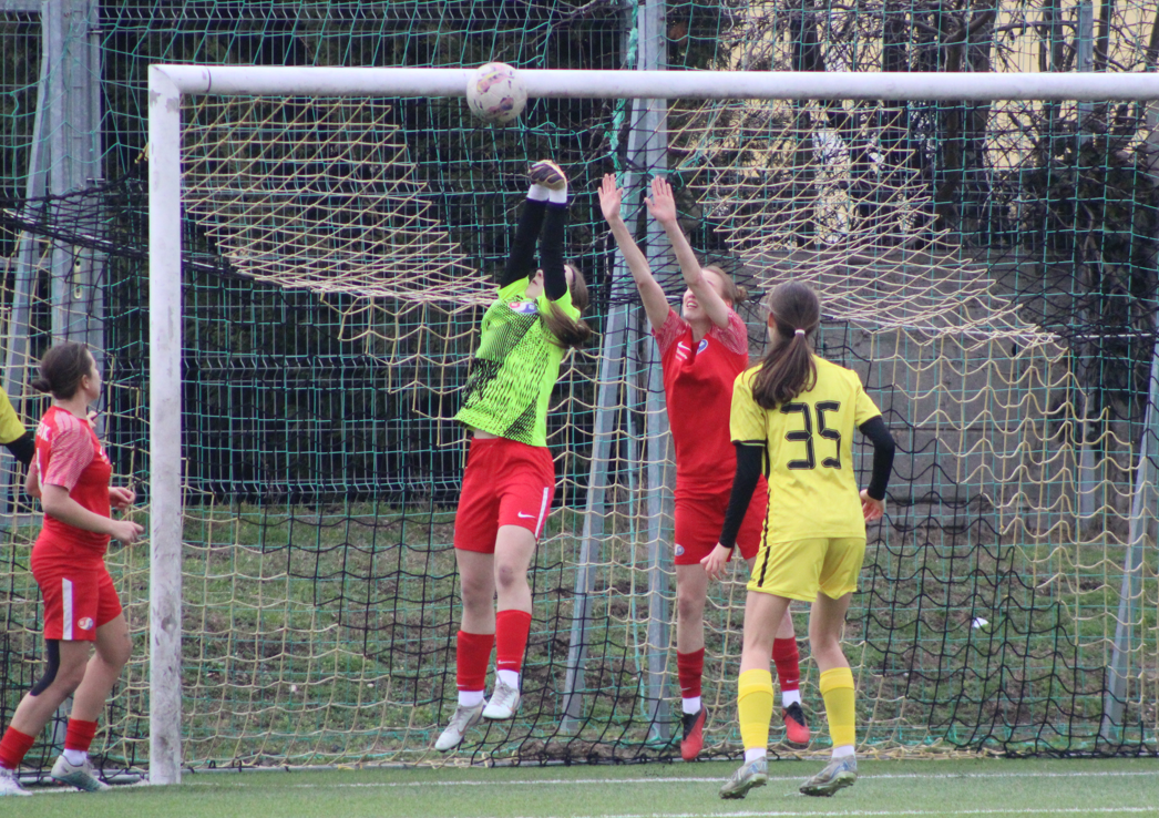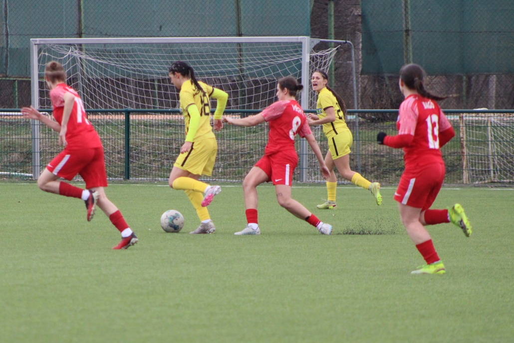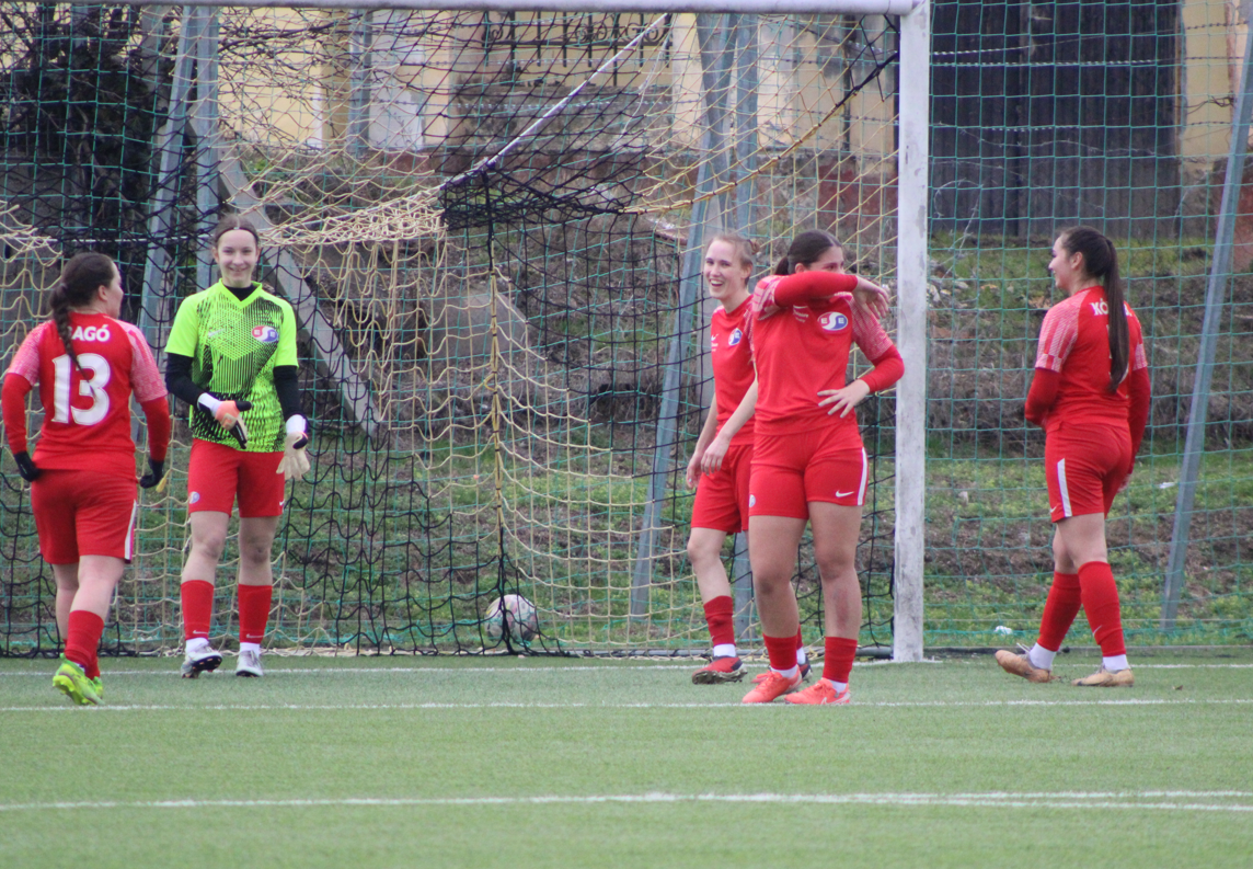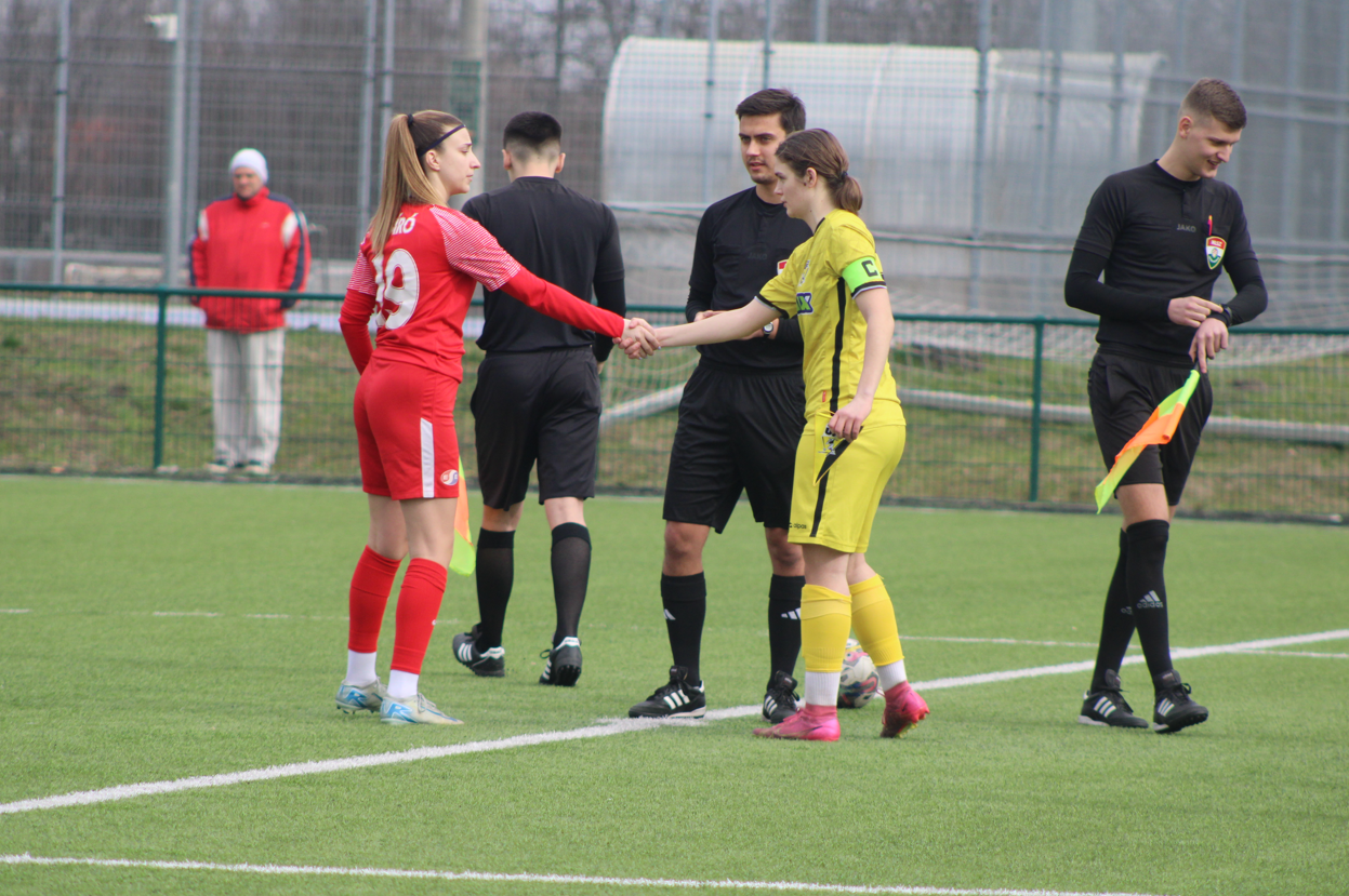 Ennek ellenére a lányok becsülettel beleálltak a találkozóba, de nem segített az esélyeket, hogy már az első negyedórában cserélni kellett, egy sérülést megelőzendő. Az első félidőben több helyzetet is kidolgoztunk, a hazaiak labdabirtoklási fölénye ellenére. A vendéglátók észlelték, hogy mezőnyjátékos állt a kapuba és két távoli átlövéssel szereztek előnyt.