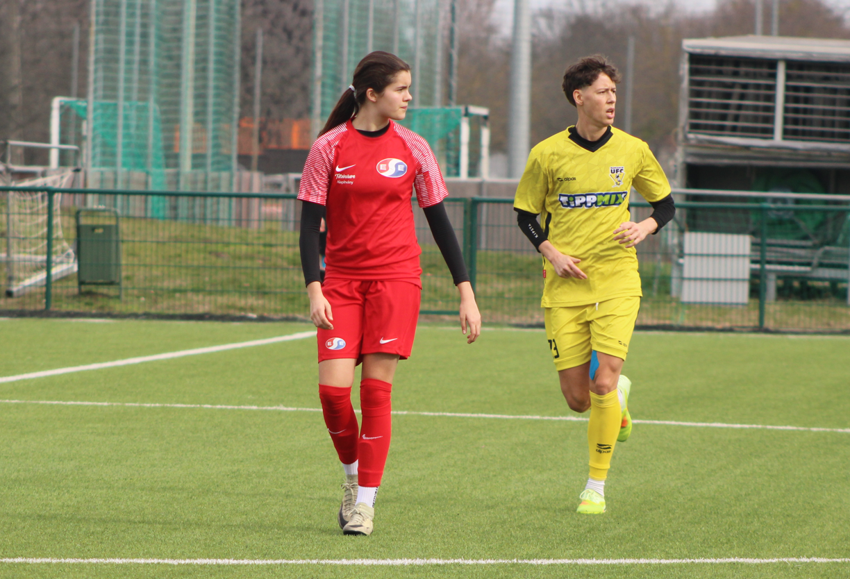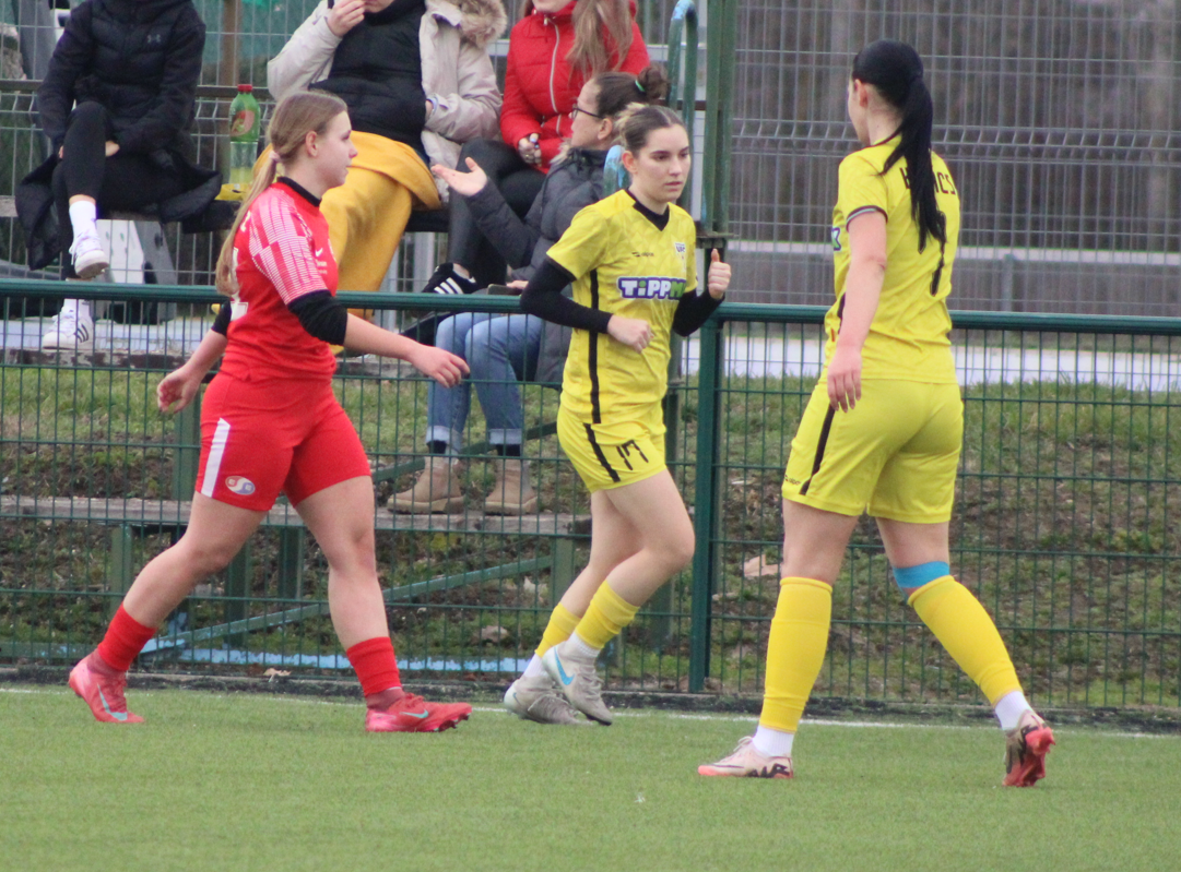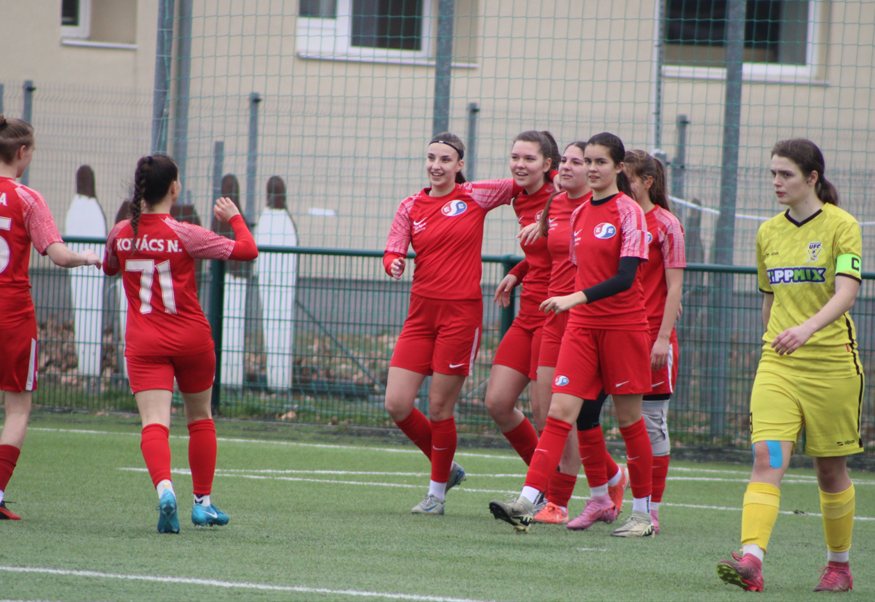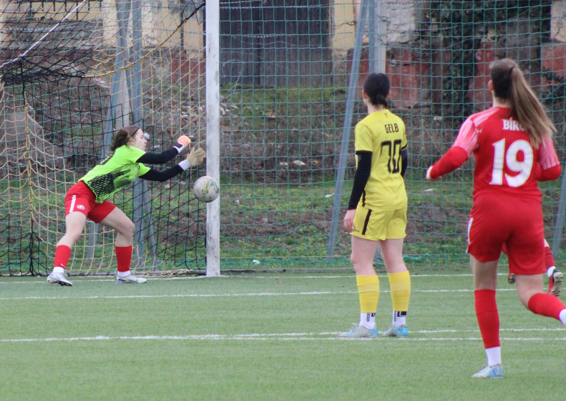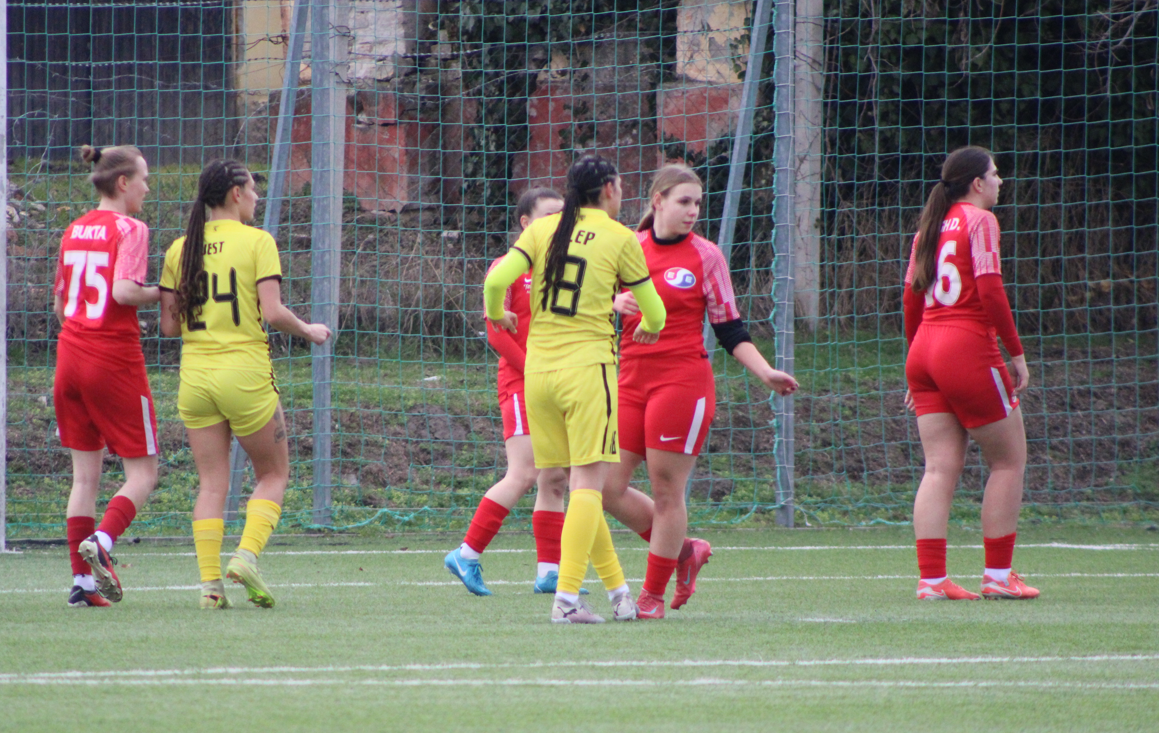 Ennek ellenére a lányok becsülettel beleálltak a találkozóba, de nem segített az esélyeket, hogy már az első negyedórában cserélni kellett, egy sérülést megelőzendő. Az első félidőben több helyzetet is kidolgoztunk, a hazaiak labdabirtoklási fölénye ellenére. A vendéglátók észlelték, hogy mezőnyjátékos állt a kapuba és két távoli átlövéssel szereztek előnyt.