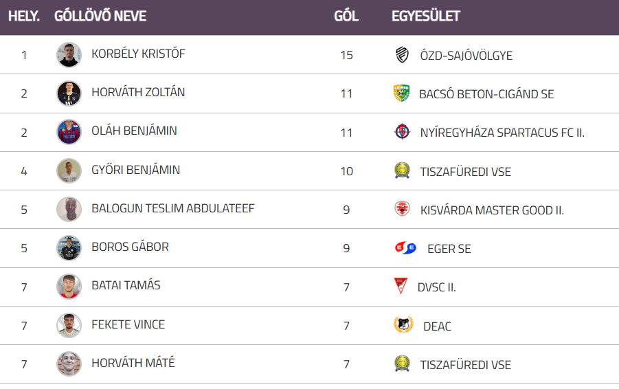 Boros Gábor kilenc találatával a góllövőlista ötödik helyét foglalja el.