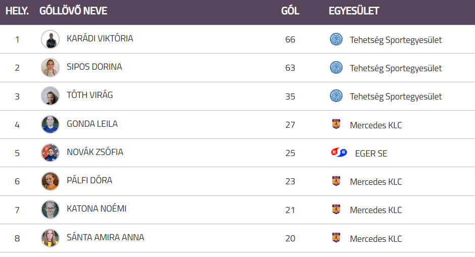 Novák Zsófia a góllövőlistán az ötödik helyen áll.