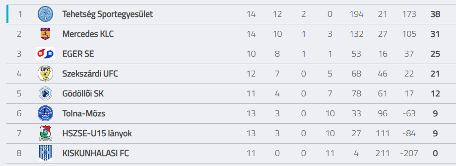 A hátralévő mérkőzések eredményétől függetlenül az már biztos, hogy a bajnokságot a Tehetség csapata nyerte meg – amelyhez ezúton is gratulálunk. A jászberényi együttes kétszer veszített pontokat, egyiket a Kecskeméttel szemben, a másikat pedig ellenünk – ez is jelzi, hogy mennyire fontos győzelmet arattak a lányok. Csapatunk jelenleg a harmadik helyen áll, amitől rosszabb pozícióban már nem tud végezni. A második helyen álló Kecskemét is lejátszotta már az összes bajnokiját, így a helyzet egyértelmű: a hátralévő találkozókon legalább négy pontot kell gyűjtenünk az ezüstéremhez. Három pont esetén a gólarány dönt, amiben jobb a rivális – köszönhetően annak is, hogy az átlagban mérkőzésenként 21 gólt kapó Kiskunhalas (volt 48 és 33 kapott gólos bajnokija is), az ellenünk tartandó két bajnoki egyikén sem állt ki…