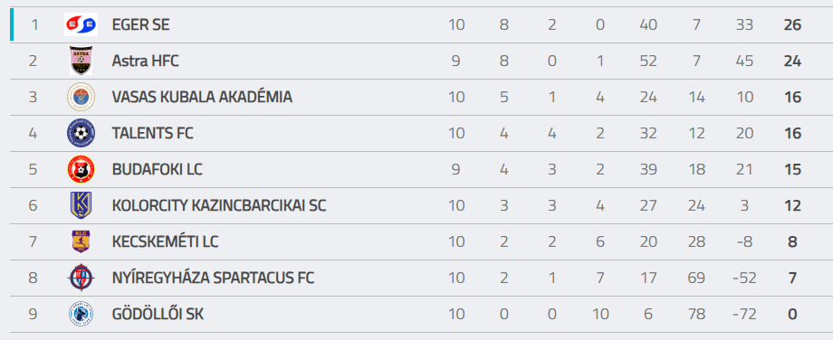 A csapat egy mérkőzéssel többet játszva az első helyen áll, jelenleg megelőzve az abszolút favorit Astra együttesét. A góllövőlistán Kota Szabina a második, Jakab Zsófia a negyedik helyen található.