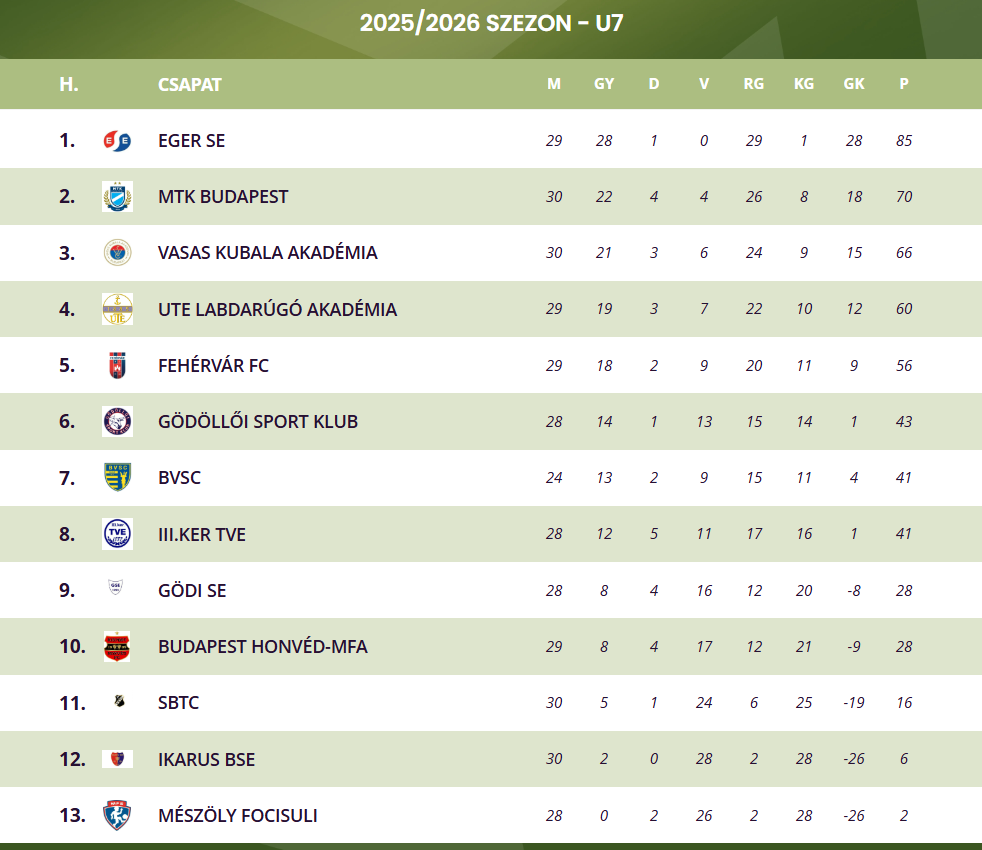 U7: Négy győzelem után továbbra is az élen
